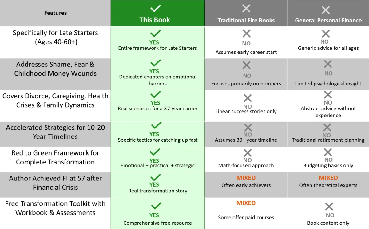 The Later Starters Guide to Financial Independence book and it's free Late Starter Foundation Toolkit.