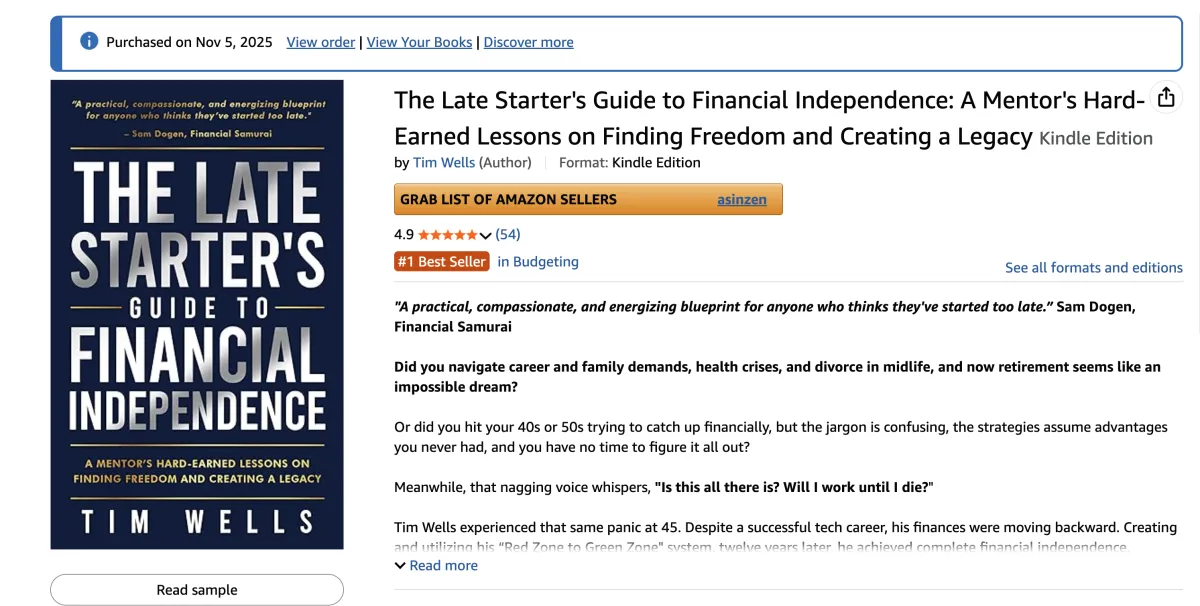 The Late Starter's Guide to Financial Independence: A Mentor's Hard-Earned Lessons on Finding Freedom and Creating a Legacy, written by Tim Wells, has achieved Amazon #1 Best Seller status in multiple categories.